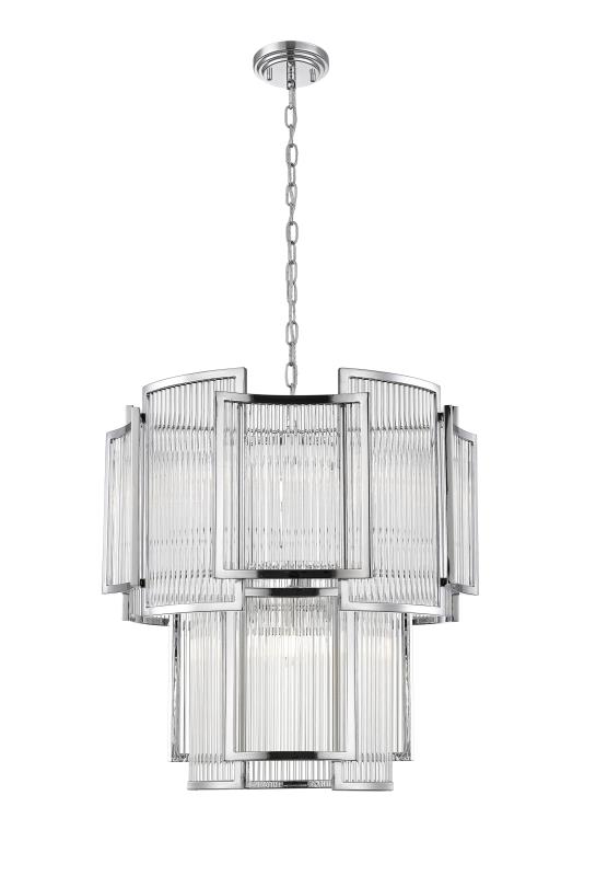 Подвесной светильник состоит из нескольких, плавно изогнутых элементов, сочетающих в себе металл цвета хром и стеклянные трубочки. D560mm, H680-2130mm, 8хЕ14